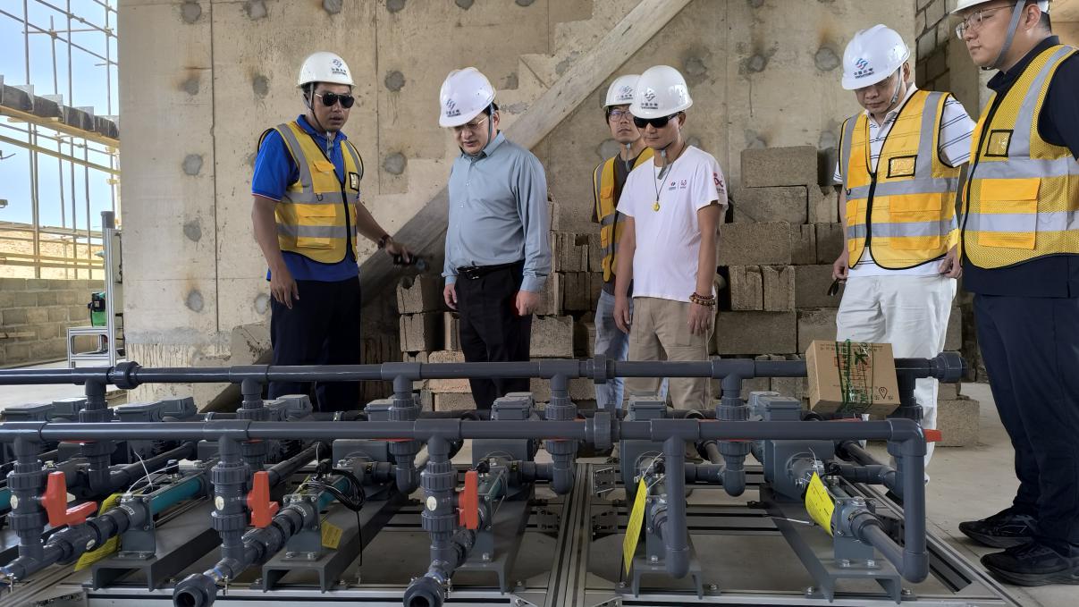 2025年7月24日,唐中东大使驱车前往中资企业在毛里塔尼亚南部特拉扎省罗索市承建的贝尼纳吉原水预处理站除砂项目、罗索跨境大桥项目现场调研,督导企业严格规范施工,加强安全生产,努力打造高质量精品项目,彰显中国企业良好形象。使馆负责经济商务工作的参赞萧文生陪同调研。