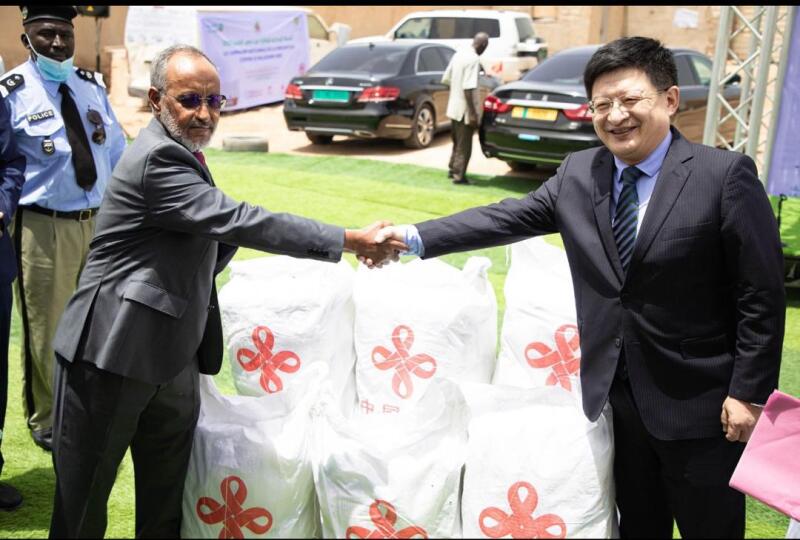 唐中东大使出席援毛防疟疾药浸蚊帐首批交接仪式