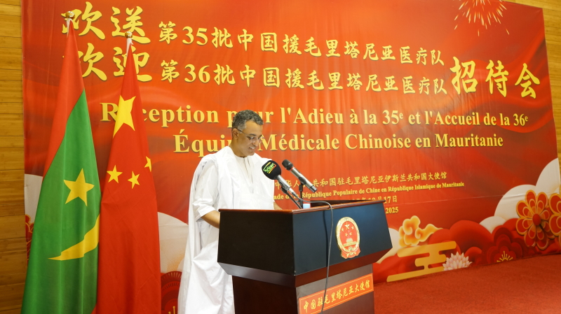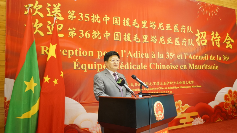 2025年10月17日,驻毛里塔尼亚使馆举办欢送第35批、迎接第36批中国援毛医疗队招待会,唐中东大使和毛卫生部长马哈茂德出席并致辞,两任医疗队全体队员和黑龙江省卫健委、毛卫生系统、努瓦克肖特大学孔子学院、在毛中资企业及华人华侨代表等约150人参加。